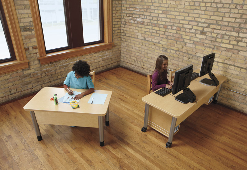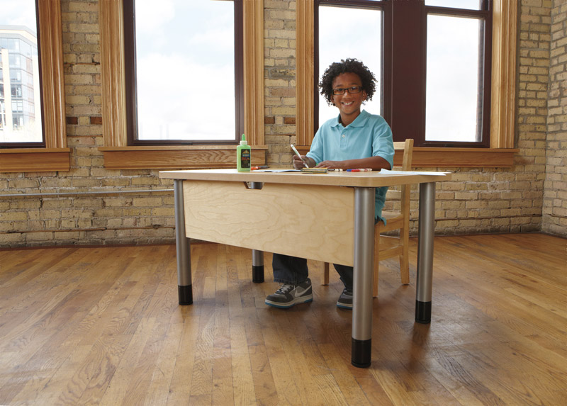 Features: KYDZSafe edges. KYDZStrong construction. KYDZTuff finish. Commitment to Care. Connects to other KYDZ Suite and Jonti-Craft products. Created by renowned modernist designer, Edgar Blazona. Tubular metal legs include levelers and allow for quick-attachment of locking casters or extenders.