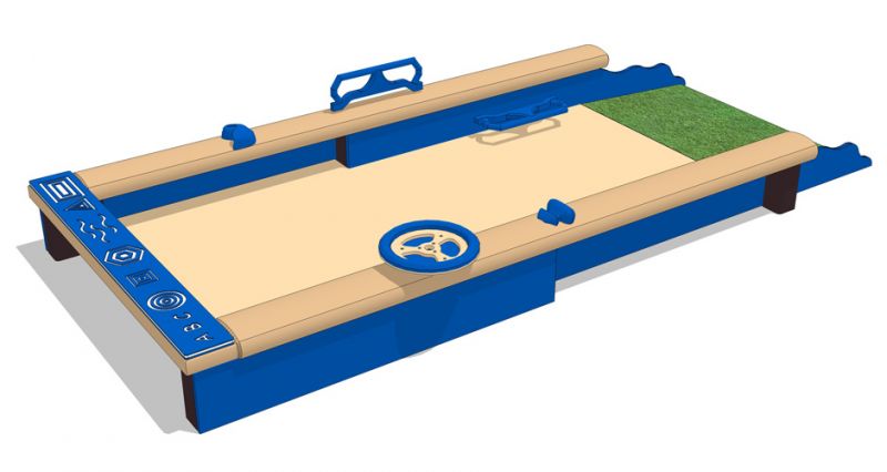 Our Infant Modular Space is ideal for very young children in the recently-mobile stage. Low panels provide support as they strengthen muscles learning to stand. A low-rise (2 inch) ramp covered in soft indoor/outdoor carpeting allows infants to crawl into the protected Infant Space. Babies gain strength crawling over the Rolling Hills or are supported as they lie on their backs against the Hills. A two inch thick pad covered in marine-quality Vinyl (with zipper finish for easy removal and cleaning) serves as an impact-attenuating surface lining the Infant Modular Spaces to protect young ones from bumps and bruises. Various Panel Top activities for sensory stimulation: engraved shapes and letters,  Pull-Up Handles, "rocks" and a turning Steering Wheel. 113"L x 50" W x 18"H.