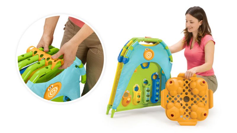 Includes ball play, spinners, shape sorting, and peek-a-boo games.