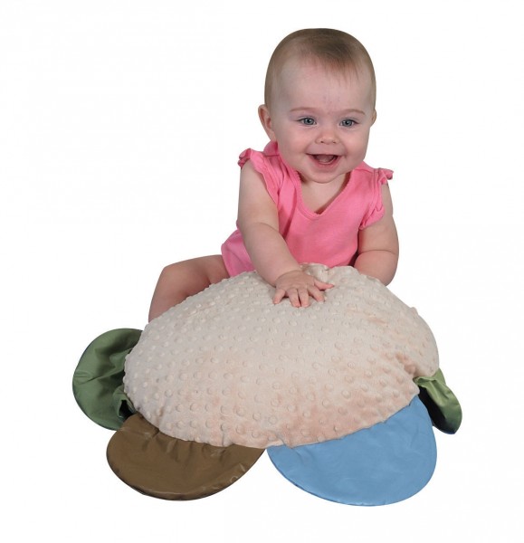 Children love to cuddle up to our irresistible flower-shaped pillow that is full of sensory experiences! This cozy pillow in bright rainbow colors contains different sensory items in each petal such as a rattle, crinkle and squeaker allowing little ones to explore different sensations. Encourages development of fine motor skills with tactile and sensory stimulation. Just unzip the polyester cover to machine wash and dry. Inner core is water and stain repellent and filled with shredded foam.