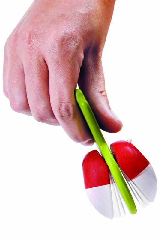 Sturdy solid wood handle and ecofriendly PlanWood combine to make this beet-shaped clapper toy the perfect addition to any musical toy collection