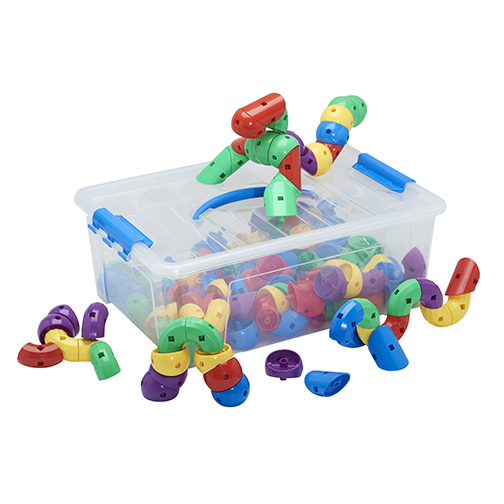 Snap together a slithering snake or twist pieces to create a growing garden with the ECR4Kids Caterpillar Bits and Pieces. With a total of 160 pieces, multiple shapes allow little ones to use their creative skills to craft patterns or build animals out of the purple, blue, green, yellow and red shapes. Intended for use by children 3 years and up. To clean, wash pieces in the sink with a clean sponge or rag, soap and warm water.