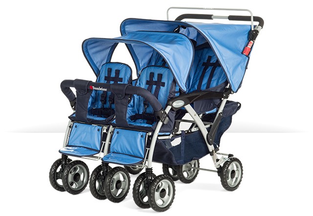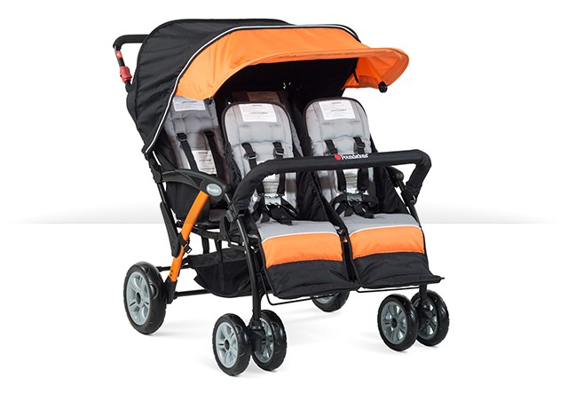 Ergonomic handle makes the stroller easy to maneuver; Canopy provides protection from weather and UV rays; mesh window allows visibility; Rubberized foam wheels provide a shock-absorbing, comfortable ride; Adjustable five-point harness fits children weighing up to 40 lbs; Baskets provide space for storing supplies; Quickly and easily folds for storage