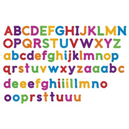 A fresh, new take on magnetic letters! Visually colorful and graphically cool, these upper- and lowercase magnetic letters are a fun way to learn letters and practice early word building. Letters are thick for added durability. Includes 26 uppercase letters, 56 lowercase letters (including 4 of each vowel), and storage box. Largest piece measures 2"H.