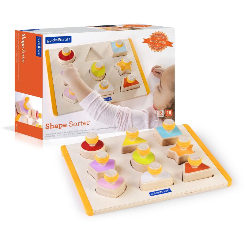 Chunky, tactile Shape Sorter blocks explore simple shapes and colors while encouraging cognitive development and kinesthetic learning.