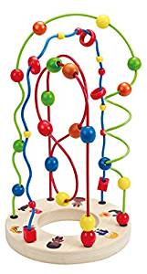 Go round and round and round. This endless maze provides endless hours of play. Hape's Ring-Around-A-Rosy bead maze is as endlessly-captivating as the everlasting children's playground game, but this one can be played alone or with friends. Little painted friends decorate the base of Ring-Around-A-Rosy, from which three unique bead mazes spring forth to enthrall and engage inquisitve minds. With Ring-Around-A-Rosy, Hape utilizes concepts from a variety of bead mazes to provide a greater variety of ways to play! Hape's Ring-Around-A-Rosy is crafted according to the hallmark high standards of all Hape toys to endure generations of imagination and fun. Ring-Around-A-Rosy is recipient of the Oppenheim Toy Portfolio Gold Seal Award of 2012.Features: Play with the Ring-Around-A-Rosy bead maze with friends or by yourself! Recipient of the Oppenheim Toy Portfolio Gold Seal Award of 2012. Ring-Around-A-Rosy is a single unit with no additional pieces. Made from Baltic Birch plywood and solid Maple from FSC-managed forests, wire, and recycled plastic. Graphics are screen-printed directly on the wood. Finished with child-safe paint. Made by Hape, a leader in designing and manufacturing high quality baby and children's toys made from sustainable materials. Dimensions: 9.84"L x 9.84"W x 17.52"H. Surfaces wipe clean.
